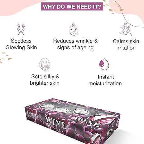 The Aaryanveda Wine Facial Kit is a comprehensive 5-step treatment designed to provide glowing, youthful skin by targeting wrinkles, dark spots, and hyperpigmentation. Infused with the antioxidant-rich properties of wine extracts, this facial kit helps in rejuvenating the skin, reducing signs of aging, and enhancing overall skin tone and texture.