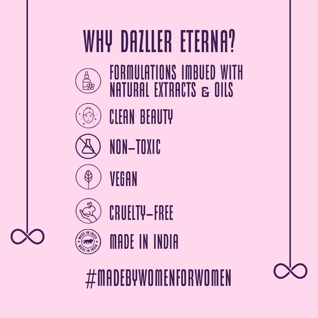 Dazller Eterna Eyeliner: With a waterproof and smudge-proof formula, this eyeliner ensures your eye makeup stays impeccable all day, even in humid or rainy conditions. Its intense color payoff and velvet matte finish add sophistication and glamour, making your eyes stand out.