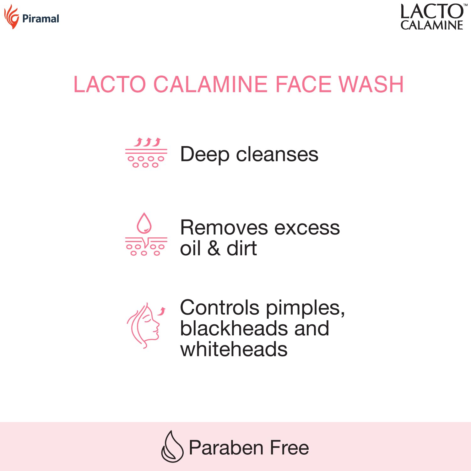 Lacto Calamine Face Wash for Oily Skin | 100ml | Kaolin Clay, Niacinamide & Vitamin E | Reduces Excess Oil, Controls Pimples, Blackheads & Whiteheads | For Women & Men
