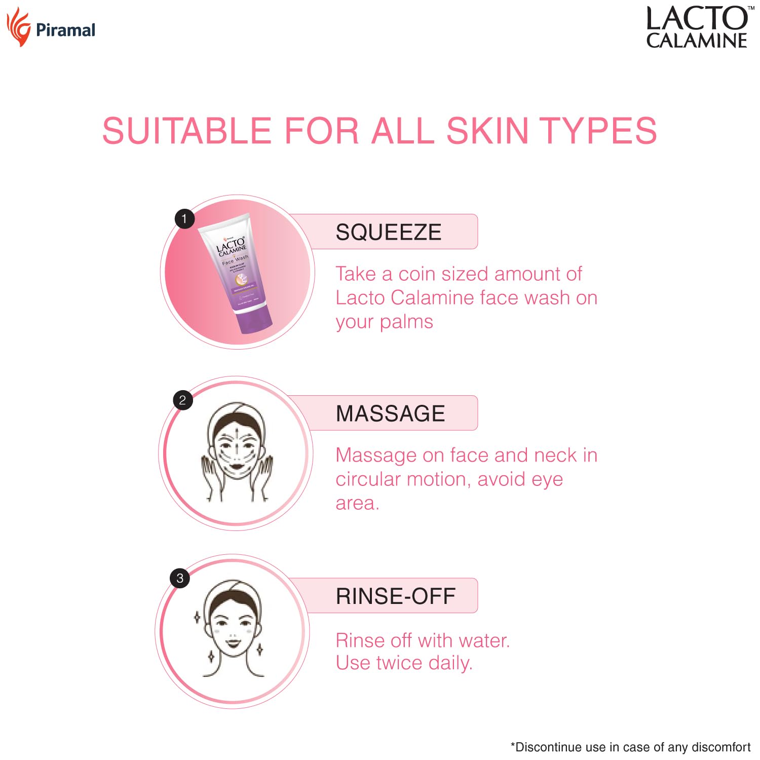 - Apply a small amount of Lacto Calamine Face Wash for Oily Skin to your hands and create a lather.