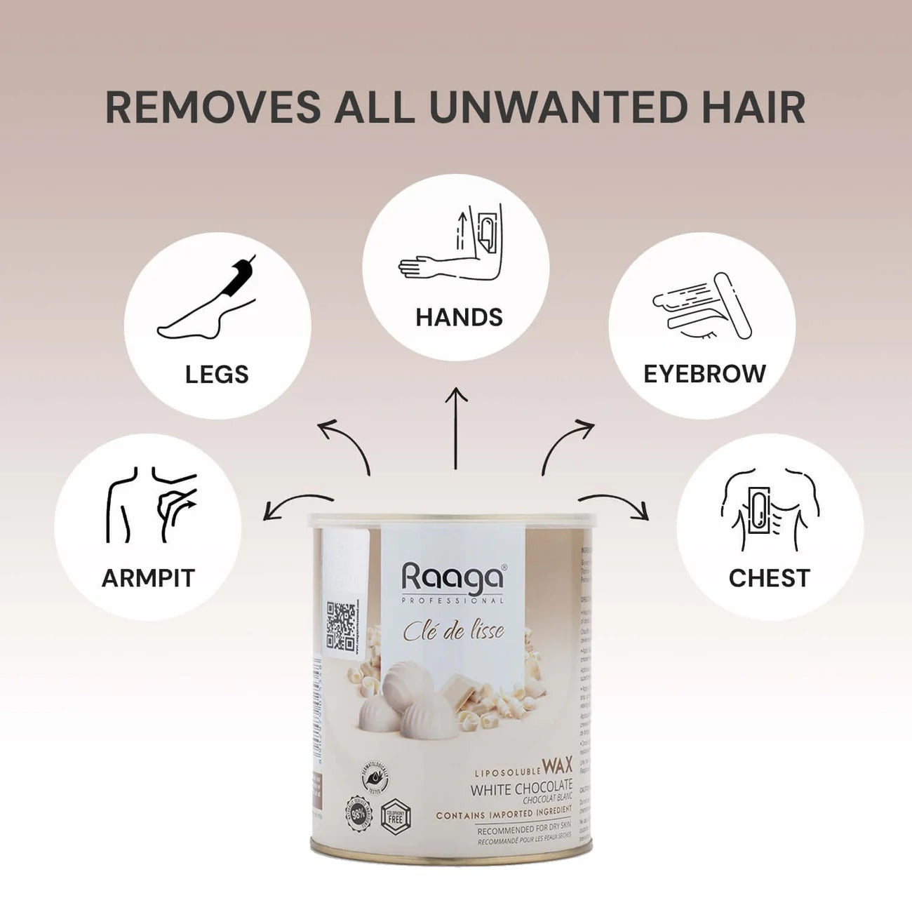 Indulge in a luxurious hair removal experience with Raaga Professional White Chocolate Liposoluble Body Wax. Specially formulated for dry and sensitive skin, this colophony-free wax glides effortlessly, removing unwanted hair from the root while keeping your skin soft, smooth, and irritation-free.