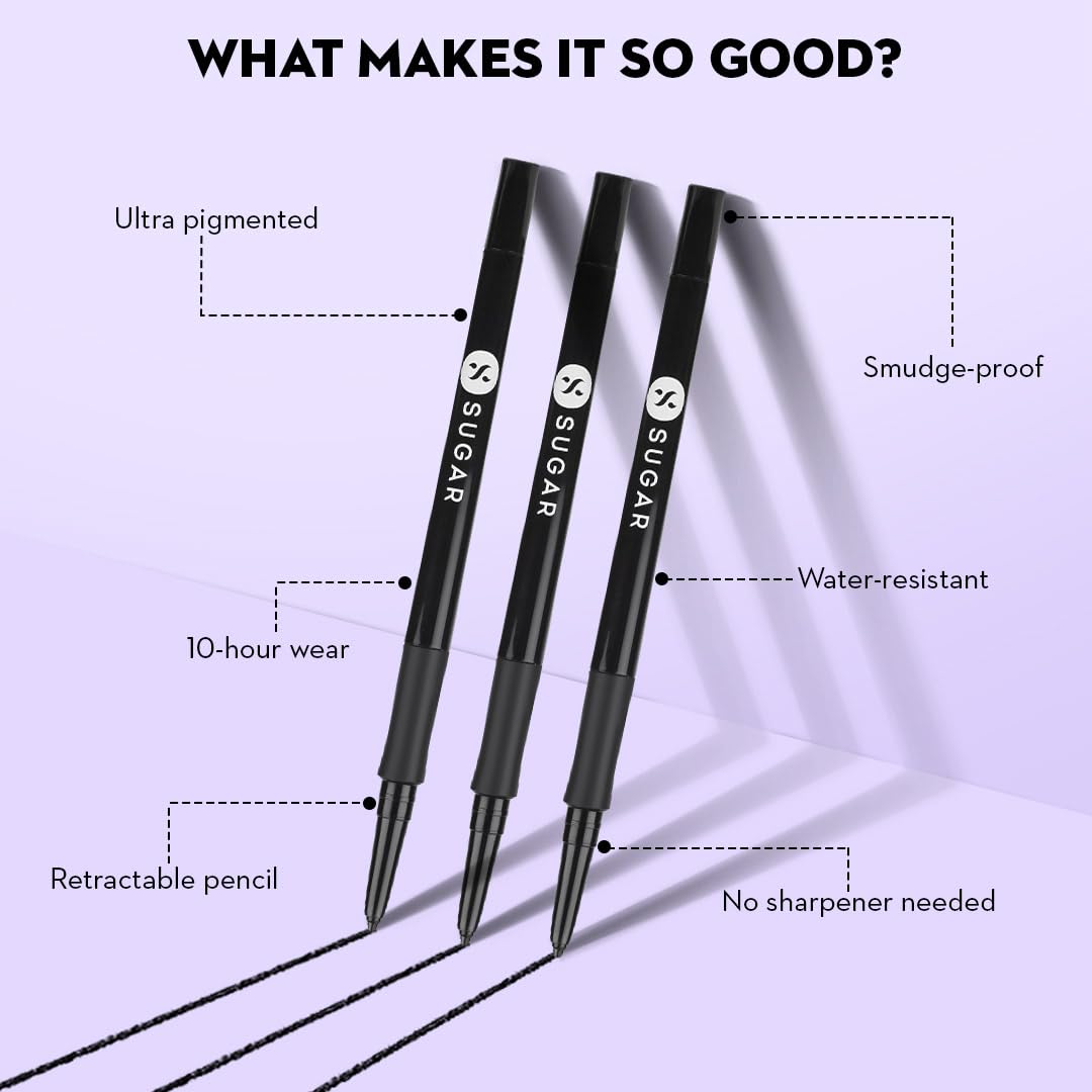 Whether you're aiming for a classic look or something more daring, SUGAR Cosmetics Twist And Shout Fadeproof Kajal Gel - 01 Black Velvet is your go-to for impeccable, high-impact eyes.
