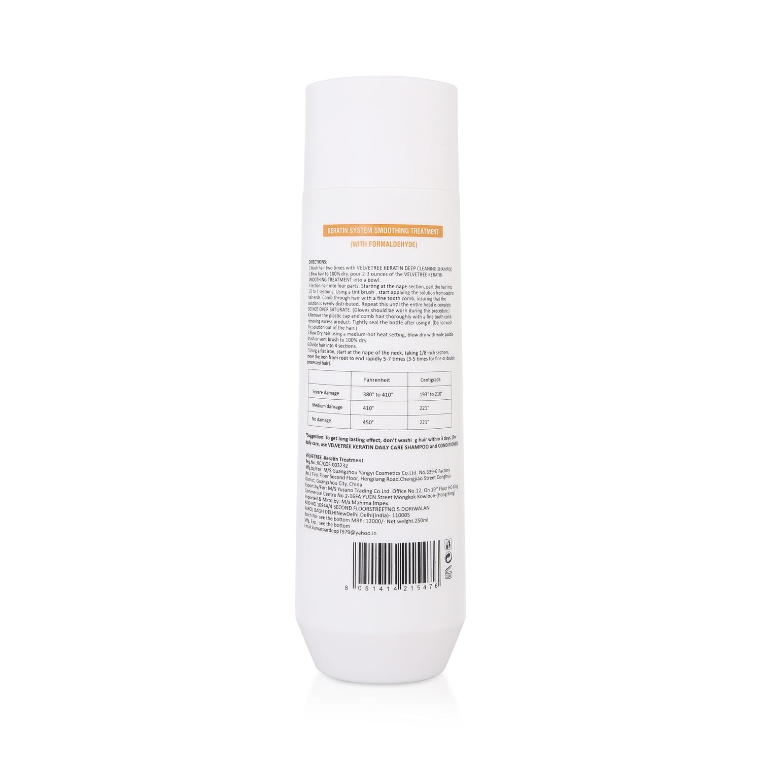 Velvetree Men & Women Natural Keratin Smoothing Treatment For Frizzy Damaged All Type Hair - 250ml