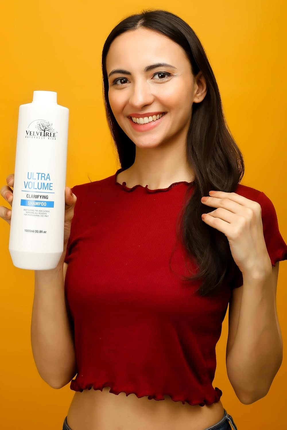 Perfect for deep cleaning all hair types on a regular basis. Deep cleaning, pollutants removal, pre-treatment; only for professional use. Make sure to utilize it prior to Velvetree Keratin Treatment for optimal performance. Removes deposits of minerals, chlorine, and hard water to restore dull hair and prepare it for VELVETREE KERATIN TREATMENT. APPLICATION: Lather damp hair with VELVETREE Clarifying Shampoo, then rinse. As necessary, repeat.